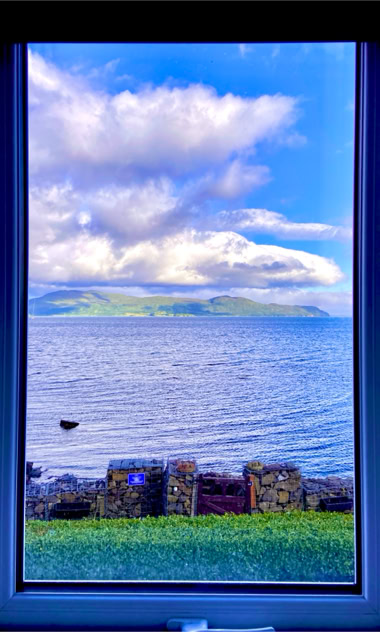 Carnmhor, built ca.1781, has been recently modernised to a very high standard. It’s a three bedroom detached cottage on a private spot with uninterrupted views of the sea, islands, mountains, forests and wildlife - and the sun sets directly opposite the sea and mountains!