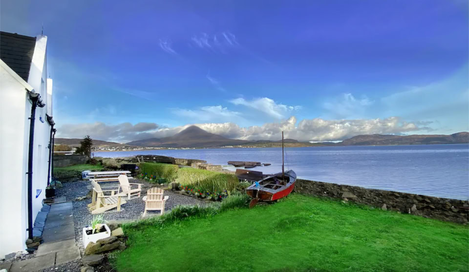 ’Carnmhor’ in Gaelic means “great stack of rocks”. This may refer to the great mountain, ‘Beinn-na-Caillich’, across the bay (where, legend has it, a Nordic Princess is buried), the volcanic bedrock of the shore the cottage is built upon, or even to the way in which the cottage was built - by hand, using huge rocks and boulders from the shoreline and surrounding area - hence the three-foot thick solid stone walls we have!