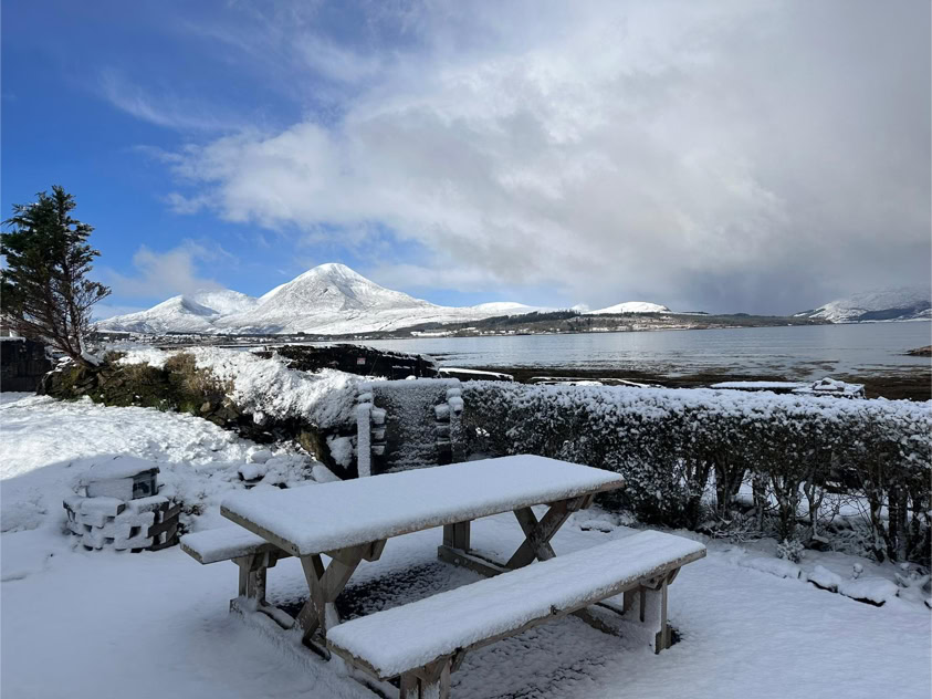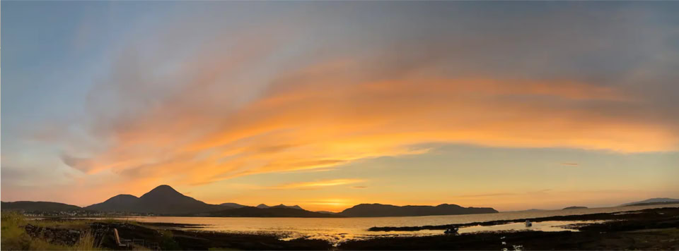 Carnmhor, built ca.1781, has been recently modernised to a very high standard. It’s a three bedroom detached cottage on a private spot with uninterrupted views of the sea, islands, mountains, forests and wildlife - and the sun sets directly opposite the sea and mountains!
