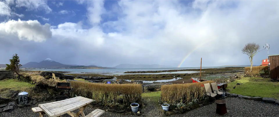 ’Carnmhor’ in Gaelic means “great stack of rocks”. This may refer to the great mountain, ‘Beinn-na-Caillich’, across the bay (where, legend has it, a Nordic Princess is buried), the volcanic bedrock of the shore the cottage is built upon, or even to the way in which the cottage was built - by hand, using huge rocks and boulders from the shoreline and surrounding area - hence the three-foot thick solid stone walls we have!